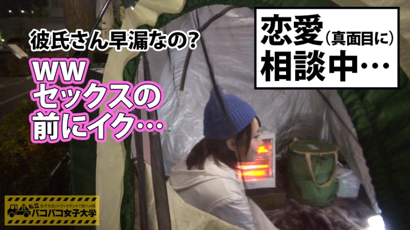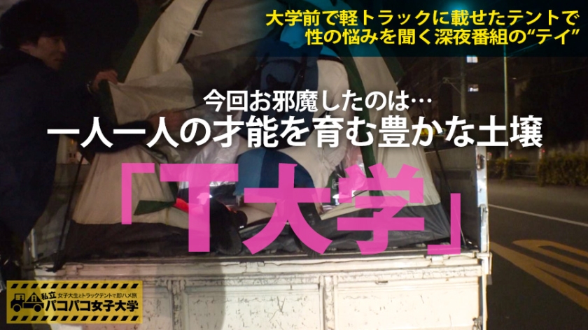 深夜の性相談番組という設定で女子大生のリアルを暴く、都内137大学制覇プロジェクト。第一回は、多くの著名人を輩出するエリート校「T大学」に潜入しました。テントに招いたのは、薬学部に在籍する音楽好きのしおりさん。飲酒を交えたトークでは、彼氏が遅漏で行為が苦痛だという赤裸々な告白が飛び出します。溢れんばかりのFカップの巨乳に触れ、そのまま下半身のチェックへ移ると、そこは美しいパイパン。期待を胸に挿入すれば、